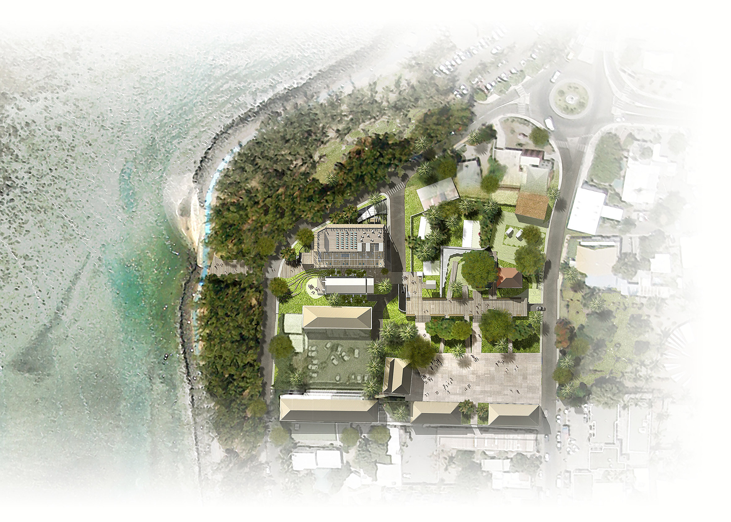 L’architecture de la médiathèque repose sur une conception bioclimatique optimisée. Le bâtiment tire parti des brises marines pour assurer une ventilation naturelle efficace, réduisant ainsi le besoin de climatisation. L'utilisation de matériaux écologiques, comme le bois certifié et des revêtements légers, assure une bonne isolation tout en minimisant l'empreinte environnementale.