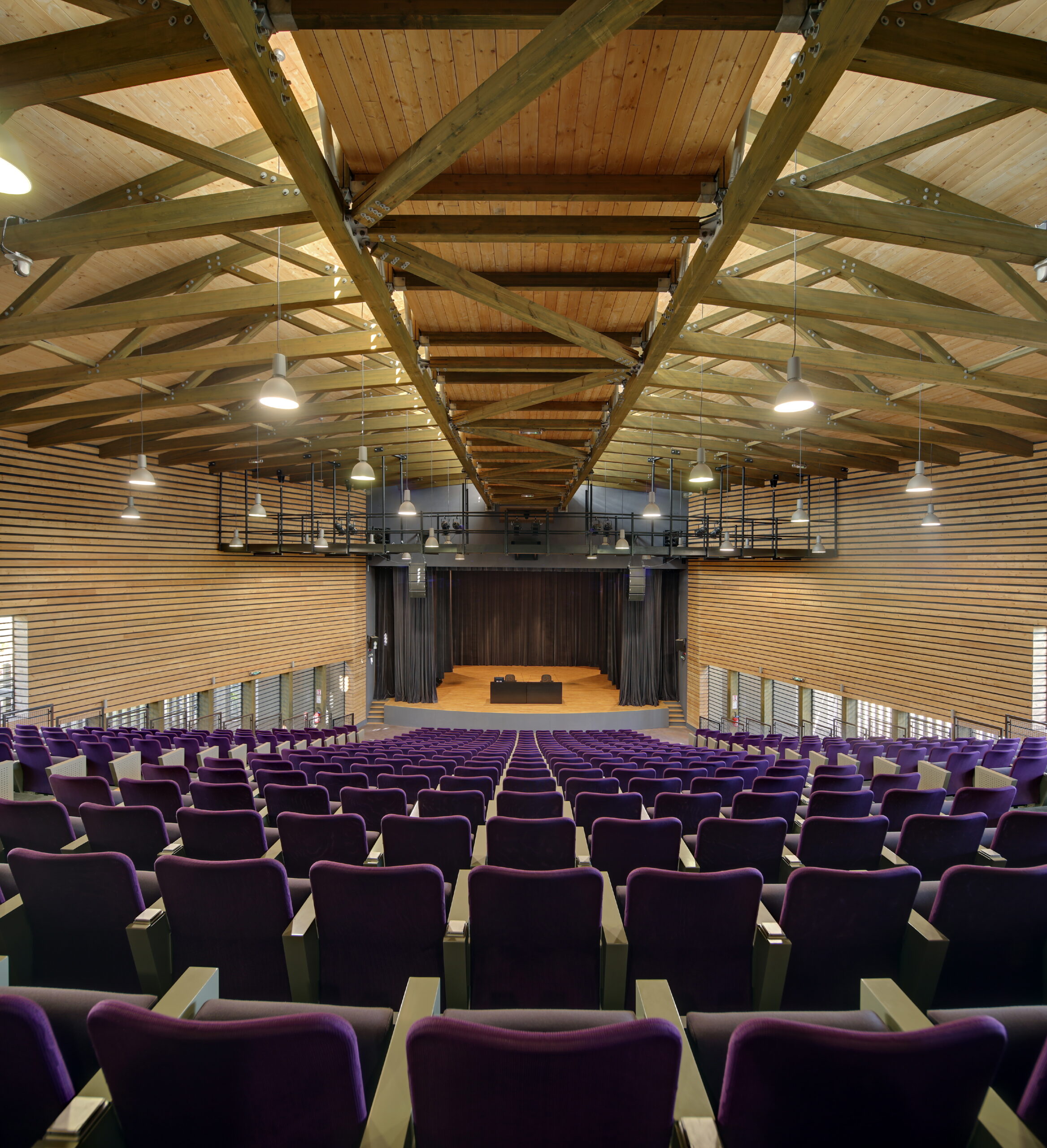 L’auditorium du Moufia est un modèle de bâtiment à faible impact environnemental. Soutenu par l’ADEME dans le cadre de ses initiatives pour des constructions durables, ce projet a été conçu pour être écoénergétique.