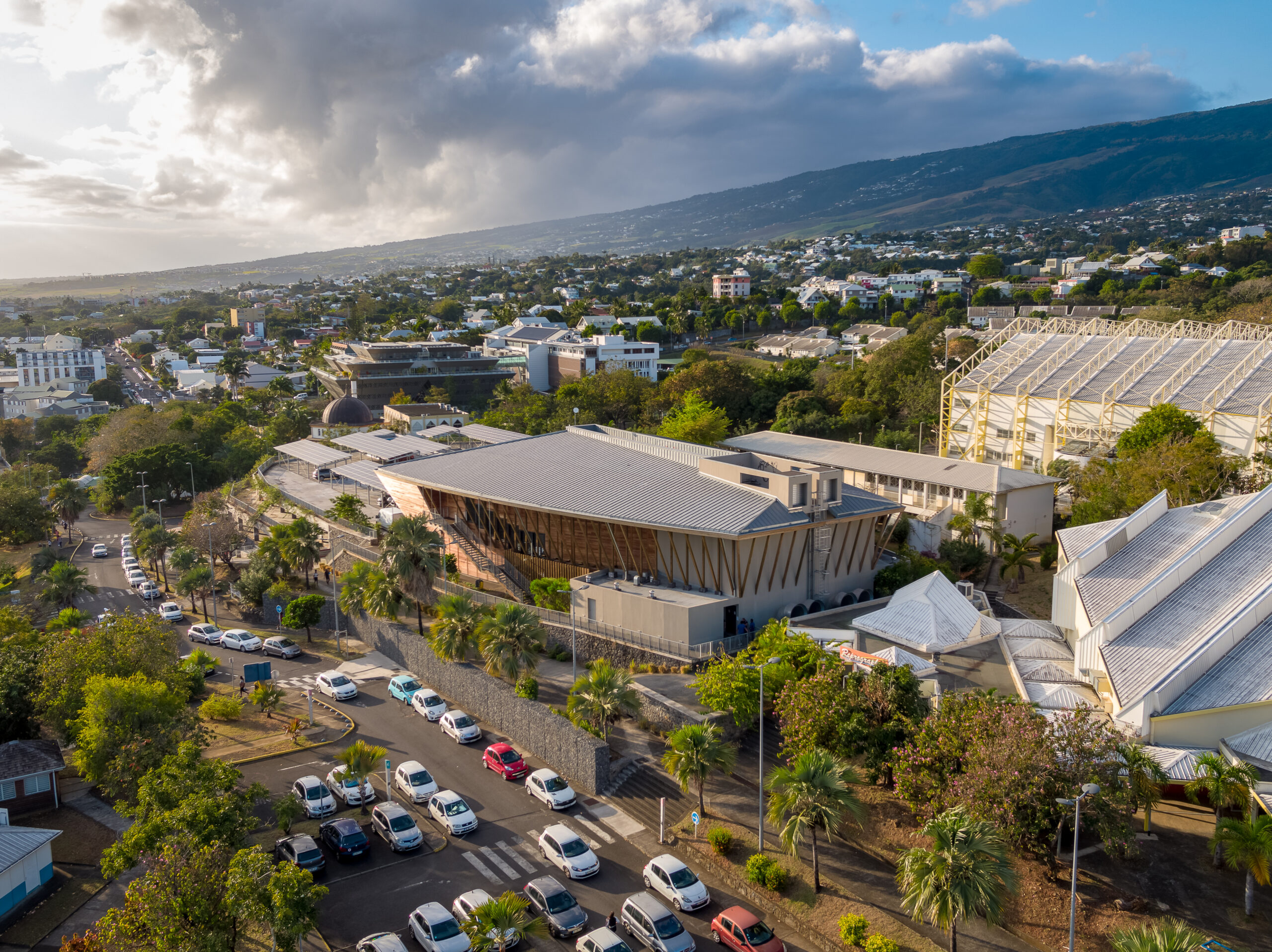 L'auditorium du Moufia, inauguré en 2014 sur le campus de l'Université de La Réunion, représente un véritable exploit architectural en matière de conception bioclimatique. Ce bâtiment de 1 500 m², avec un budget de 9,28 millions d'euros, a été conçu pour accueillir jusqu'à 550 personnes, offrant un espace polyvalent pour les cours, conférences et événements culturels.