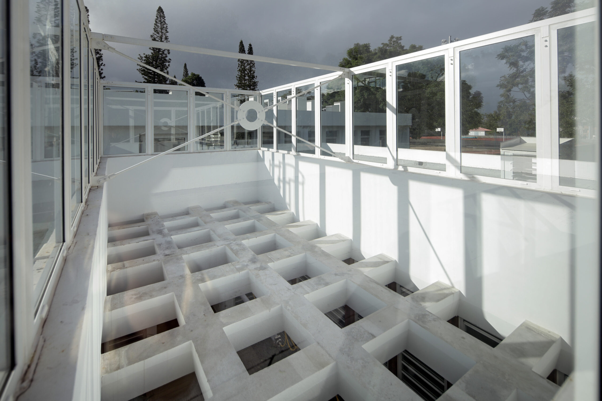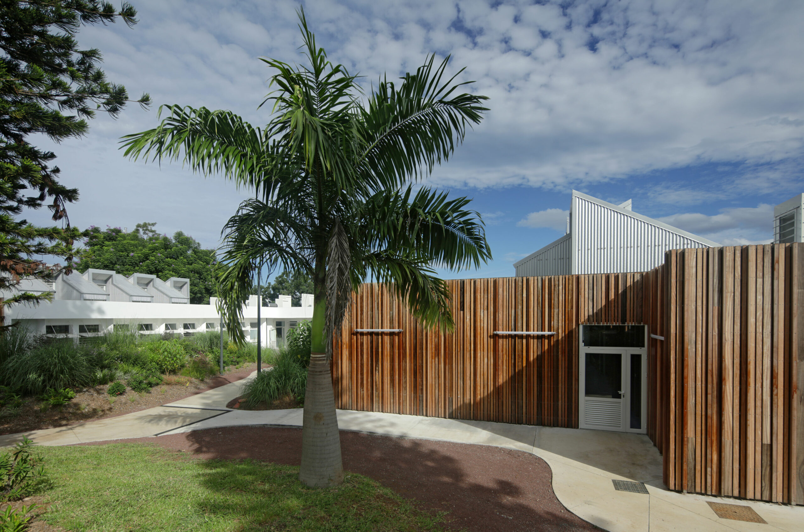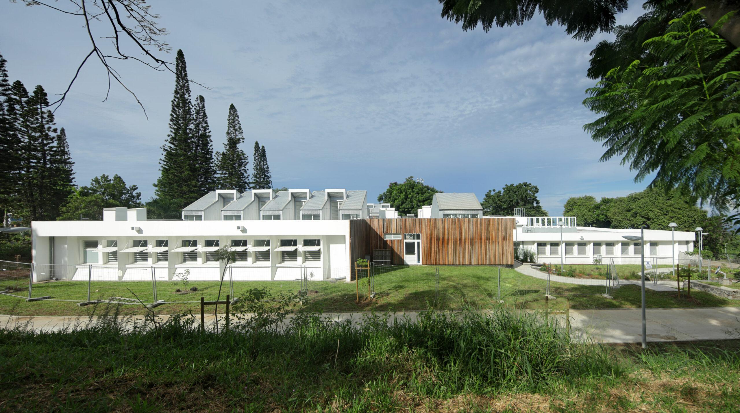 Le Bâtiment M illustre parfaitement comment la réhabilitation d’un bâtiment existant peut devenir un projet bioclimatique à La Réunion. Les enjeux techniques consistaient à donner de la hauteur au bâtiment pour favoriser la ventilation naturelle et limiter les effets de masque, tout en s’adaptant à l’environnement déjà aéré du campus. L’orientation et la forme du bâtiment ne pouvant être modifiées, une expertise spécifique et des solutions innovantes ont été nécessaires pour atteindre un confort thermique optimal.